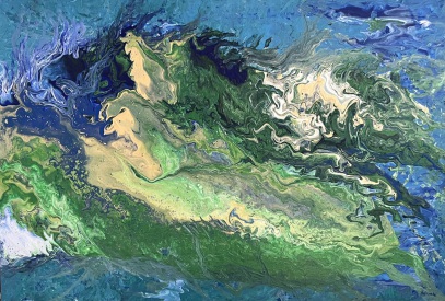 Tite: Grüne Insel, Acryl-Mischtechnik/Leinwand, 2026, 70 x 100 cm