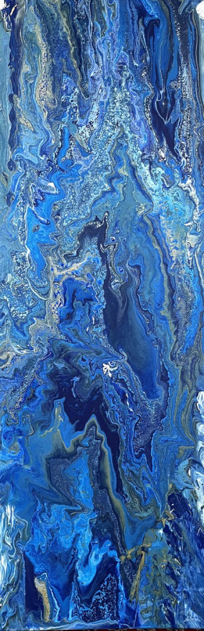 Titel: In der Tiefsee, Acryl-Mischtechnik/Leinwand, 2025, 40 x 120 cm