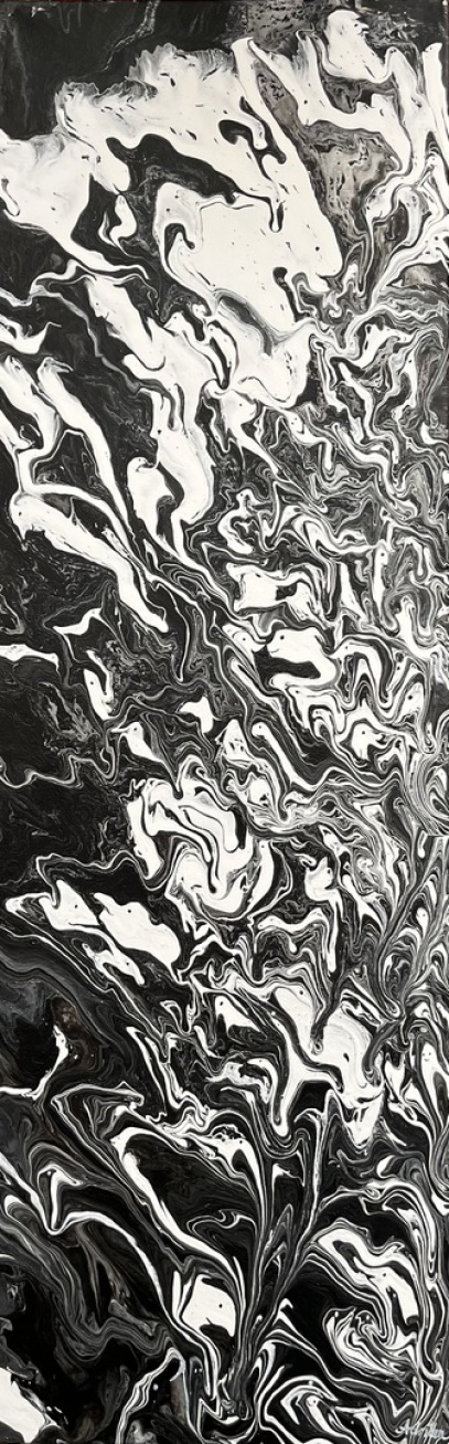 Titel: Gegensätze ziehen sich an, Acryl-Mischtchnik/Leinwand,2024, 40 x 120 cm